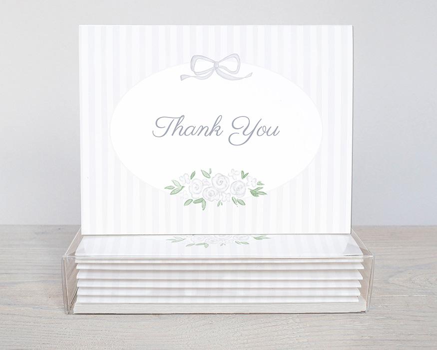 Delicate Striped Floral Thank You Cards With Watercolor Bows Box Of 10