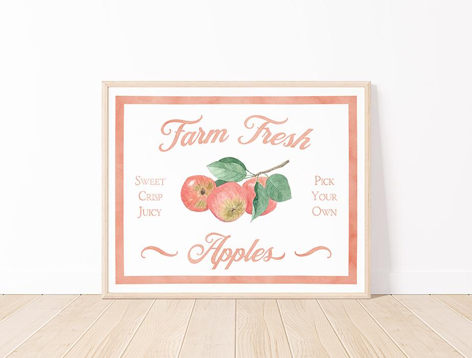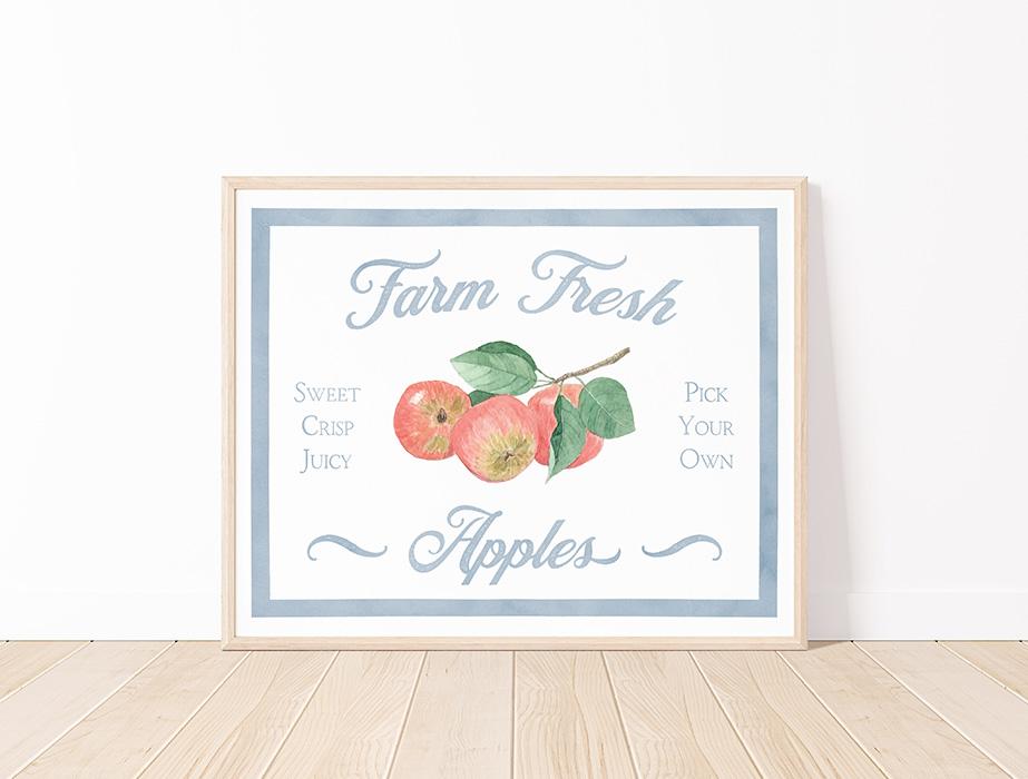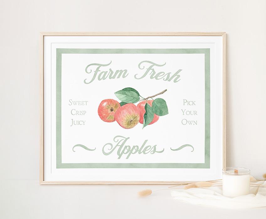 Farm Fresh Apples Watercolor Farm Sign Print