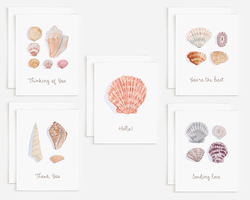 Seashell Watercolor Greeting Cards Variety Pack Of 10