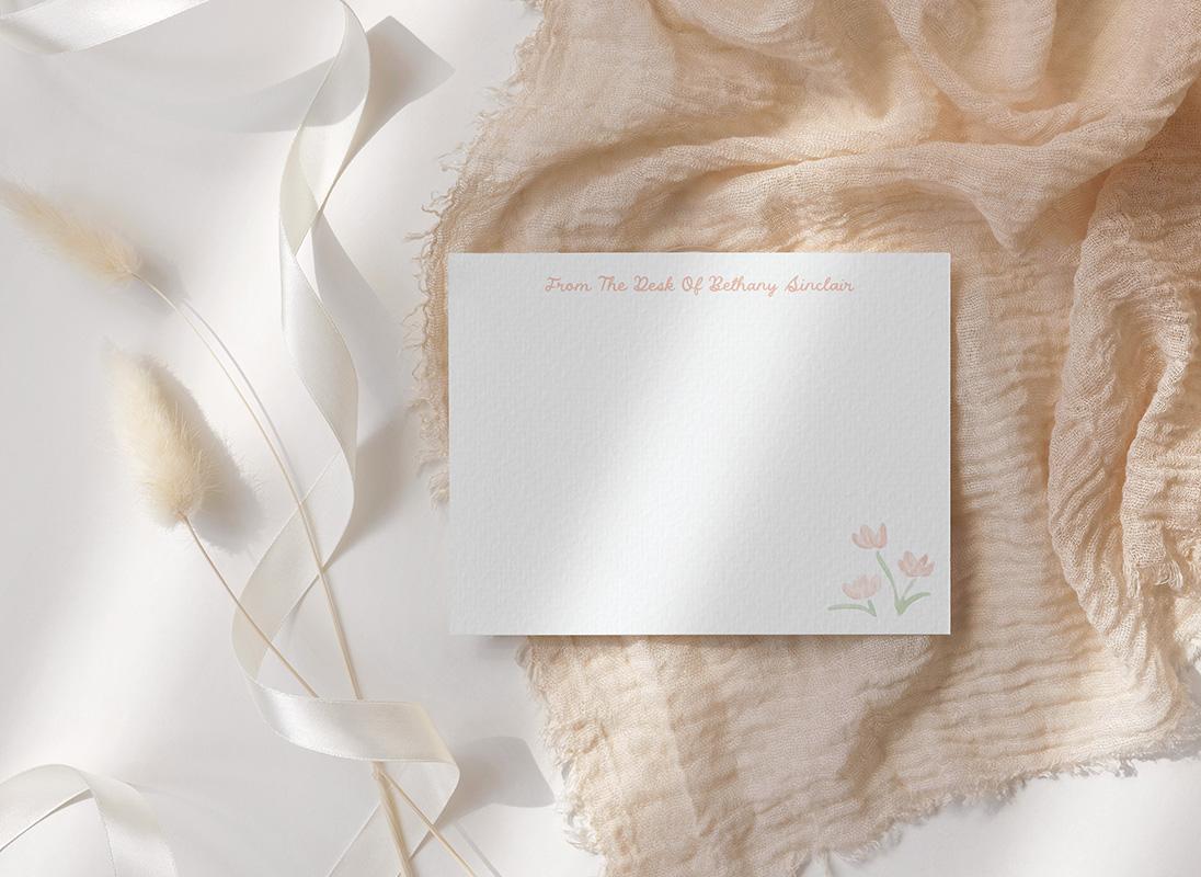 Tiny Peach Watercolor Flowers Personalized Stationery Set