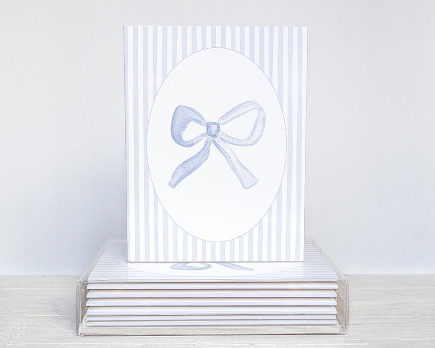 A set of watercolor cards that are perfect for writing notes and letters for any occasion! These cards feature a large watercolor bow and a background of watercolor stripes in your choice of pastel colors.